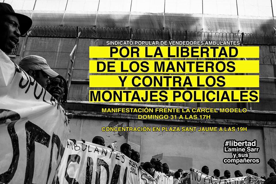 Hoy sábado han entrado en prisión preventiva Lamine Sarr, portavoz del Sindicato Popular de Vendedores Ambulantes, y tres compañeros más del sindicato.